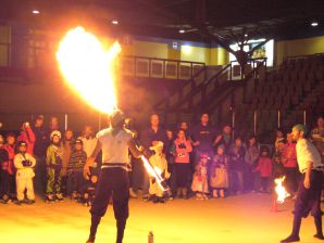 La fête s'est transportée à l'aréna à 18 h où 225 personnes ont pris part au Bal des patineurs. Animation et ambiance terrifiante, potion magique et cracheurs de feux ont ponctué l'activité.