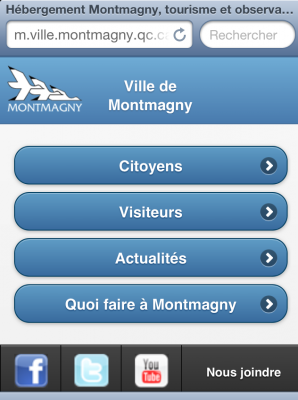 En juin dernier, la Ville de Montmagny mettait en ligne son tout nouveau site Web. Aujourd'hui, l'administration municipale poursuit sur sa lancée en mettant en ligne la version mobile de son site Internet conçue spécialement pour la navigation et la collecte d'informations à partir des téléphones intelligents et autres outils mobiles.