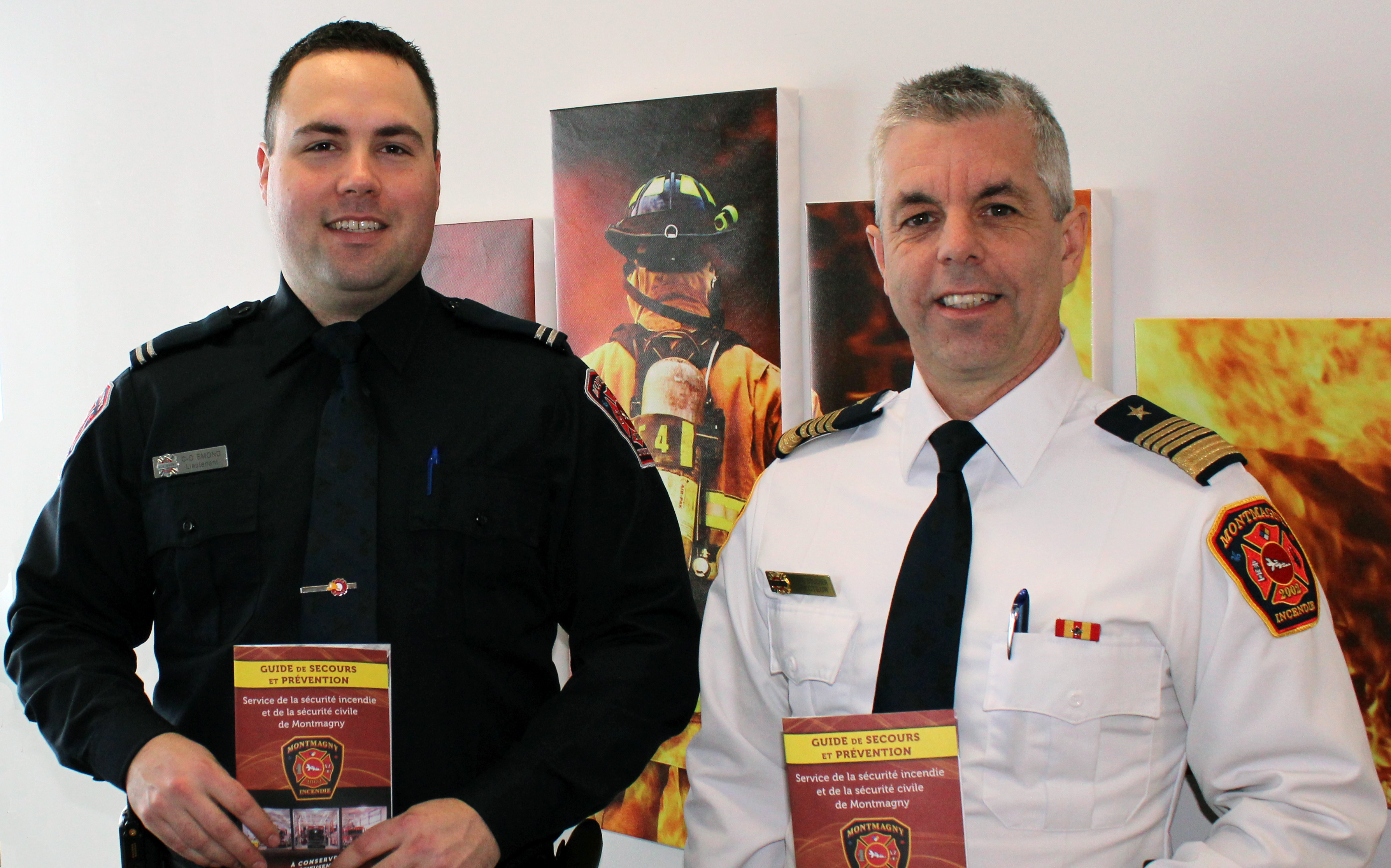 Sur la photo, on aperçoit le pompier-préventionniste, M. Charles Olivier Emond, et le directeur du Service de la sécurité incendie et de la sécurité civile de la Ville de Montmagny, M. Pierre Boucher.