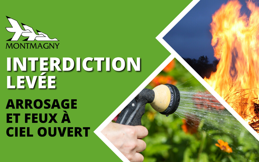 La Ville de Montmagny désire informer la population de la levée de l'interdiction d'arrosage à compter de ce lundi 31 août. De plus, le Service de la sécurité incendie et de la sécurité civile autorise les feux à ciel ouvert à compter du lundi 31 août sur le territoire de Montmagny et de Cap-Saint-Ignace.