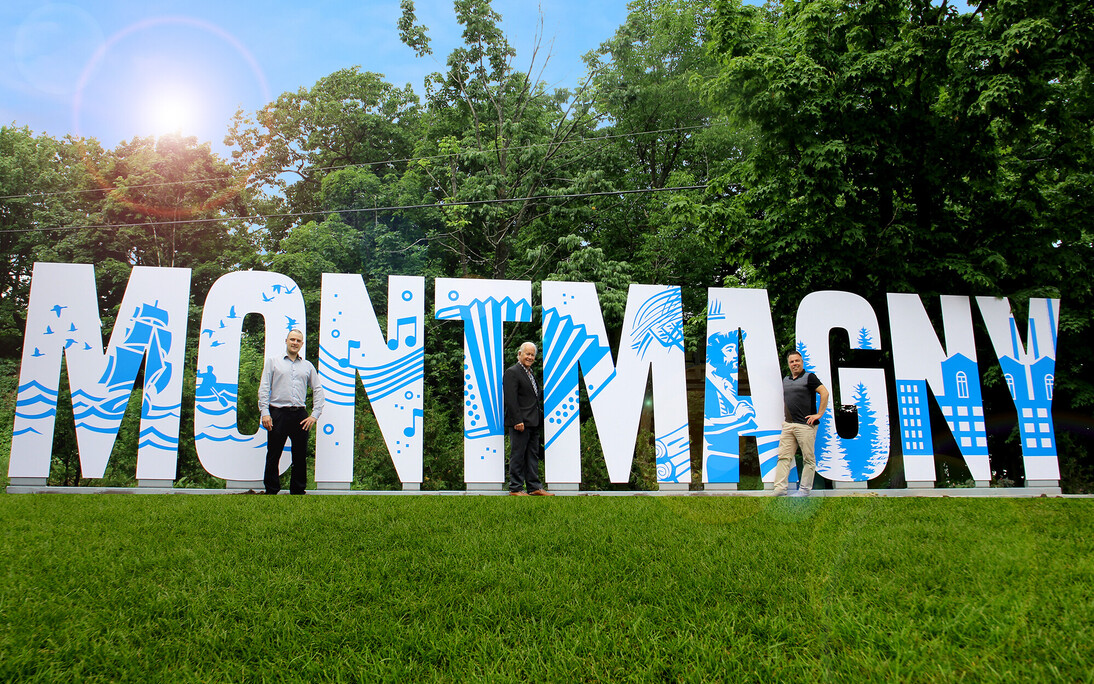 Installées sur le petit promontoire gazonné à l'entrée de la ville après le passage de La Boucle du Grand défi Pierre Lavoie en 2015, les lettres géantes MONTMAGNY ont subi une cure de rajeunissement. Faites d'aluminium peint et dotées d'une structure d'acier galvanisé, les nouvelles lettres qui arborent la signature des Fêtes du 375e ont été mises en place le 14 juin et sont là pour durer. Un bel ajout qui rend l'entrée de la ville superbement accueillante, juste à temps pour l'arrivée des visiteurs en période estivale!