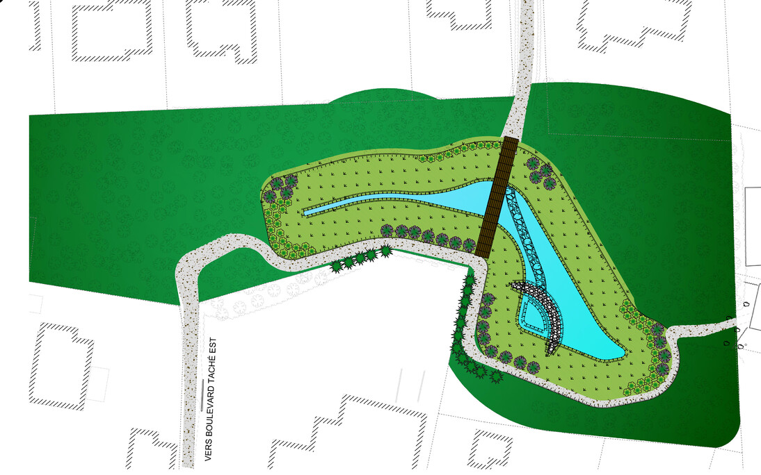 « Depuis sa création, cet espace vert sert principalement de lien entre le secteur domiciliaire et le boulevard Taché. Les gens le traversent sans vraiment s'y attarder. Mais une fois les travaux du bassin complétés, la Ville envisage la tenue d'une consultation citoyenne afin de recueillir des suggestions pour agrémenter ce parc pour les besoins des familles de ce secteur », d'expliquer le nouveau maire, M. Marc Laurin.