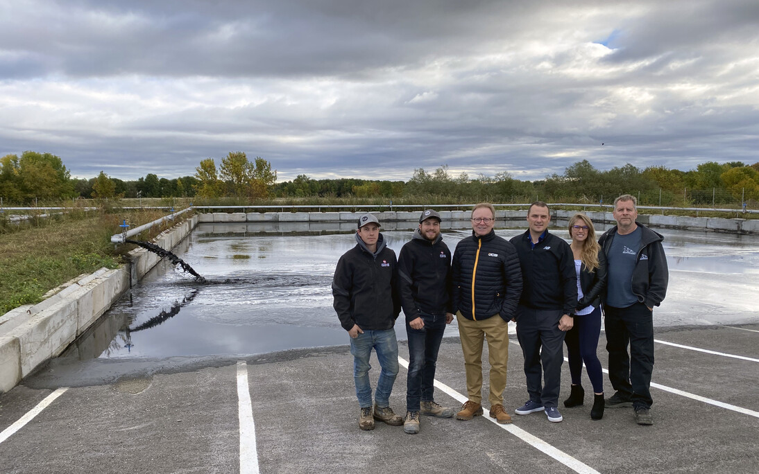 Photo à la une: Au centre, on aperçoit M. Marc Laurin, maire de la Ville de Montmagny, en compagnie de membres de l'équipe du Service des travaux publics et des infrastructures (Louis Létourneau, directeur, Émilie Guimont, technicienne en génie civil, Jocelyn Noël, superviseur au traitement des eaux) et de représentants des Entreprises Gilbert Cloutier (Louis Cloutier, responsable technique, et Philippe Cloutier, technicien en génie civil).
