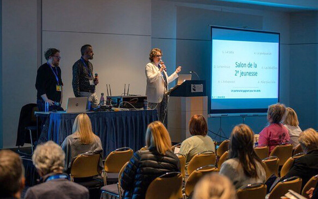 Initiée par Mme Brisebois, cette conférence visait à montrer l'importance d'inclure les municipalités dans les projets touchant les personnes aînées puisque ces dernières sont des actrices clés dans le déploiement des services de proximité. Elle portait sur le Salon de la 2e jeunesse, un évènement majeur qui s'est déroulé à Montmagny en 2023 et qui visait à rassembler les personnes aînées pour briser l'isolement, les informer des services offerts dans leur environnement et valoriser le vieillissement actif.