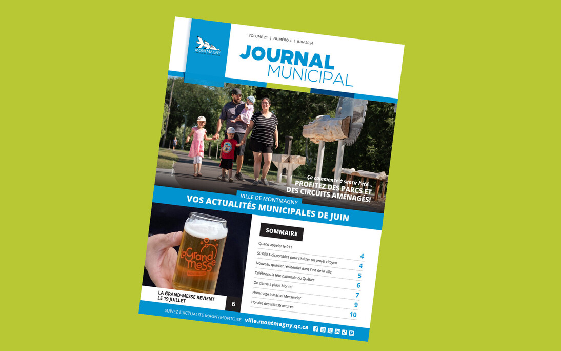Le Journal municipal mensuel de la Ville de Montmagny est maintenant disponible! Pour prendre connaissance de l'édition de juin, deux options sont possibles.