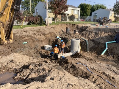 Avec 7 114 317 $ investis en travaux d'immobilisations sur le territoire, 2023 est encore une belle année considérant l'imprévisibilité du contexte économique. En moyenne, le programme d'immobilisations tourne autour de 5 à 6 M$ annuellement. La première phase des travaux de remplacement des conduites d'égouts du secteur ouest est l'un des gros chantiers de l'année. Ce projet de plus de 1,4 M$, essentiel en raison des changements climatiques et qui se poursuit en 2024, a bénéficié d'une subvention de 99 360 $ du Programme d'infrastructures municipales d'eau (PRIMEAU).