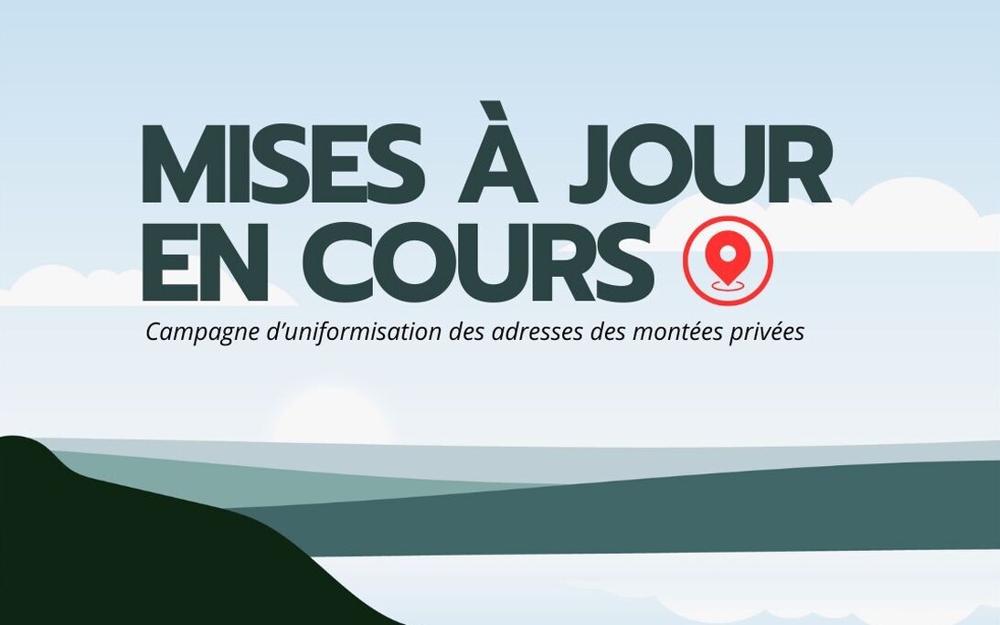 Depuis le 18 août, les nouvelles adresses des montées privées de Montmagny situées en bordure du fleuve Saint-Laurent et dans le secteur de la route Trans-Comté sont en vigueur. Toutefois, pour des raisons hors du contrôle de la Ville de Montmagny, certaines mises à jour de services de cartographie en ligne tels que Google Maps et l'installation des nouvelles pancartes de rue n'ont toujours pas été effectuées. Cette situation n'affecte aucunement les services d'urgence et la poste, et devrait rentrer dans l'ordre dans les prochaines semaines.