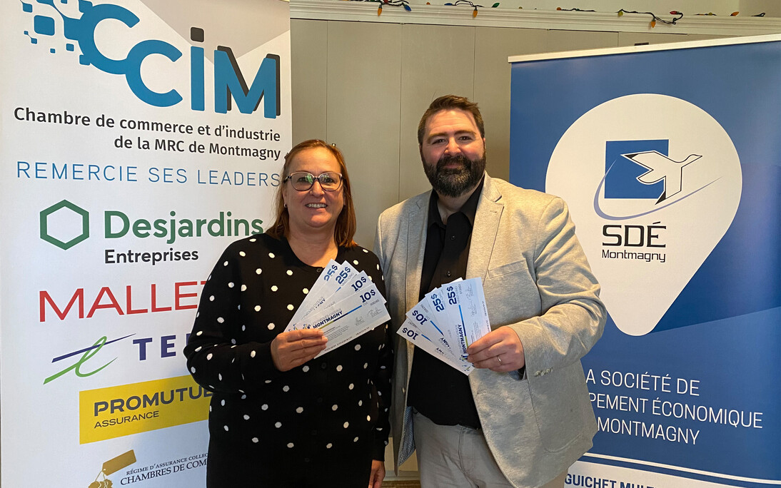 « Offrir des chèques-cadeaux Montmagny, c'est bien entendu un cadeau qui fera plaisir à vos proches, vos amis, vos employés. C'est aussi un choix judicieux qui contribue à l'économie locale, car ils sont réinvestis directement dans les commerces d'ici. Grâce à notre collaboration avec la CCIM, les chèques-cadeaux Montmagny sont maintenant un levier régional de développement économique », a exprimé Mathieu Sirois, directeur de la SDÉ.